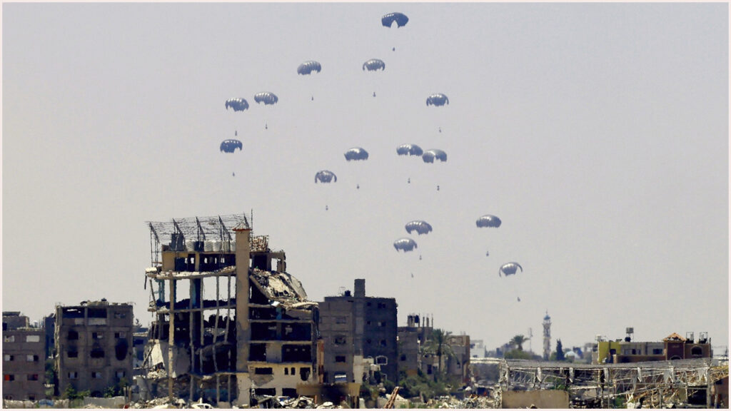একই দিনে ইসরায়েলি সেনাবাহিনী জানিয়েছে, কানাডা ছাড়াও জর্ডান, সংযুক্ত আরব আমিরাত, মিসর, জার্মানি ও বেলজিয়াম মোট ১২০টি খাদ্য সহায়তার প্যাকেট আকাশ থেকে ফেলেছে।